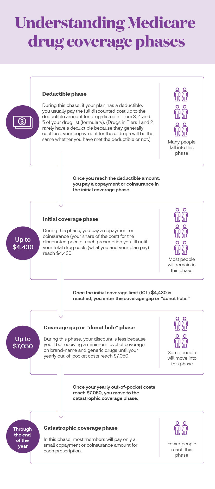Your payments may vary throughout the year, depending on how much you have already spent on prescription drugs. Your cost-sharing will depend upon the benefit phase you have reached in your coverage.